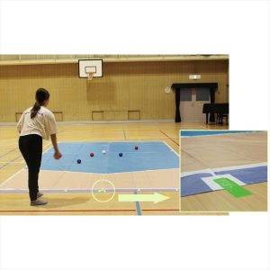 ボッチャのコートを作るのは時間も手間もかかりますが、キャリーコートを使えばすぐにプレーが楽しめます。養生テープを貼る位置が示されているので固定するのが簡単。加えてその部分はコート補強の役目も果たし、耐久性に優れています。軽量で小さく折りたためるので持ち運びもラクラク。